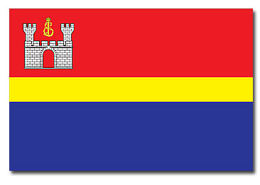 Флаг Калининградской области представляет собой полотнище с соотношением сторон два к трем и разделенное на три горизонтальные полосы. Верхняя — красная, средняя — желтая, нижняя — синяя. Верхняя и нижняя полосы равновеликие, средняя полоса составляет одну треть от верхней (нижней) полосы. На красном поле, в левом верхнем углу, изображена серебряная крепость с вензелем императрицы Елизаветы Петровны.